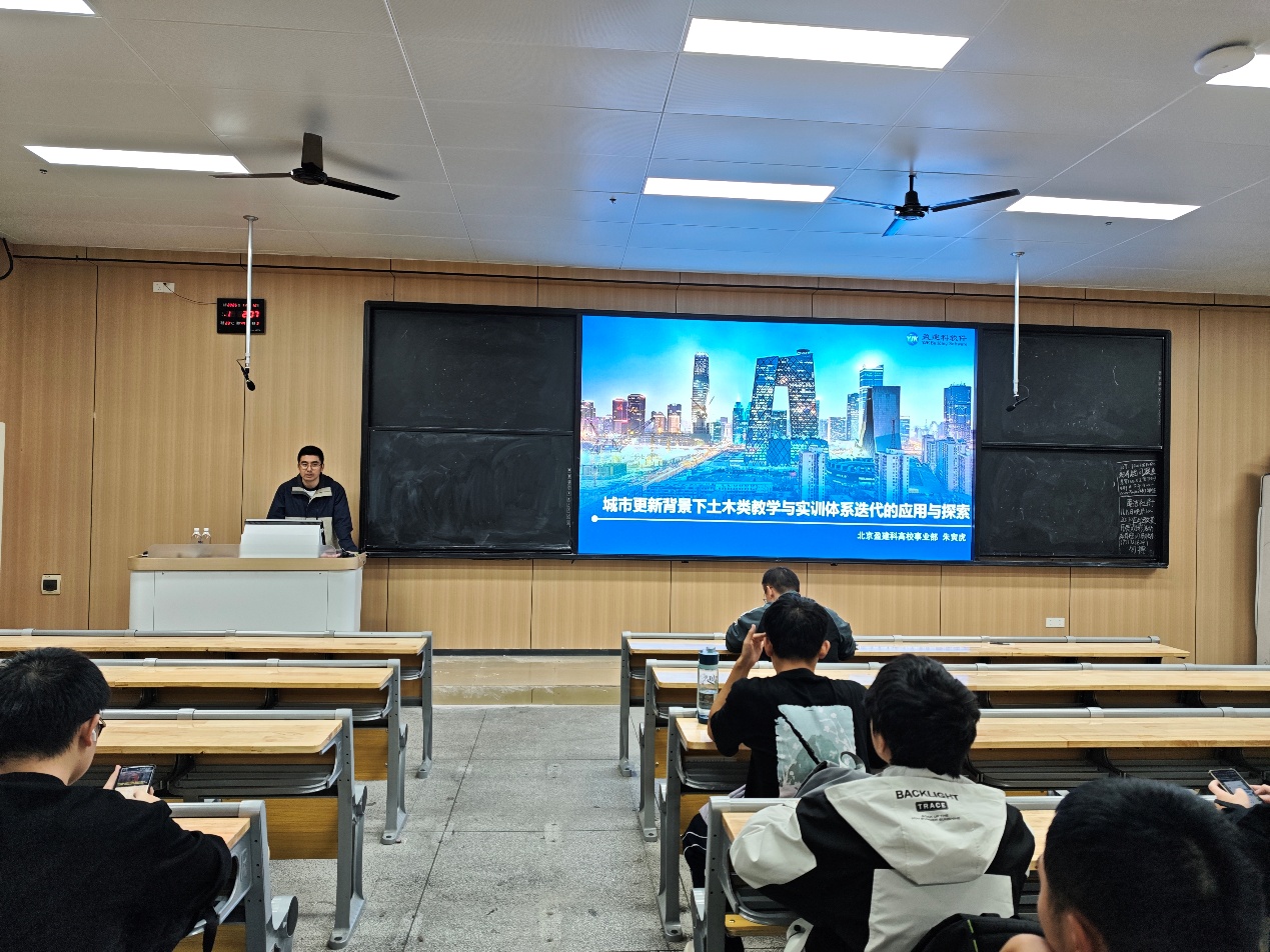 2025 年 11 月 12 日,2025 级智能建造与智慧交通专业导论课第四次课在南华楼 111 教室顺利开讲。北京盈建科软件股份有限公司高校事业部方案总监朱寅虎担任主讲人,带来《城市更新背景下土木类教学与实训体系迭代的应用与探索》主题报告。专业相关教师出席本次活动。