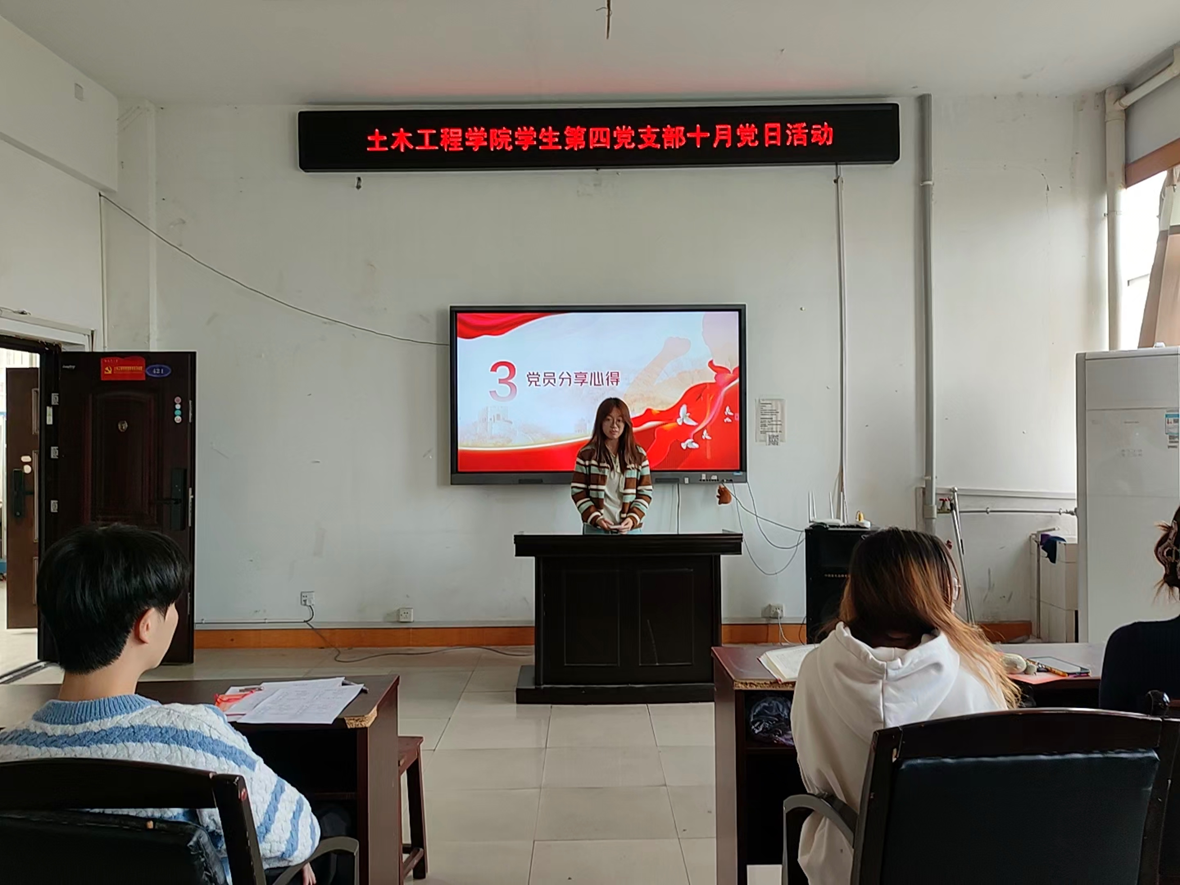 2025年10月24日14:30,土木工程学院学生第四党支部在土木楼四楼会议室召开“学思践行悟嘱托,砥砺奋进新征程”十月份主题教育党日活动。活动由谭思思同志主持,全体党员参加。
