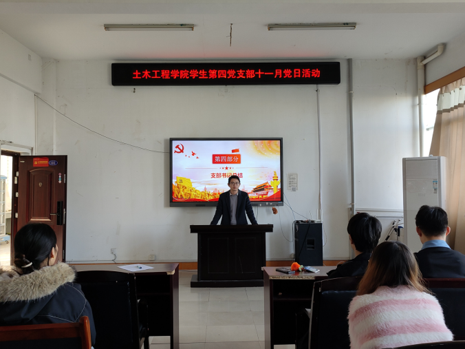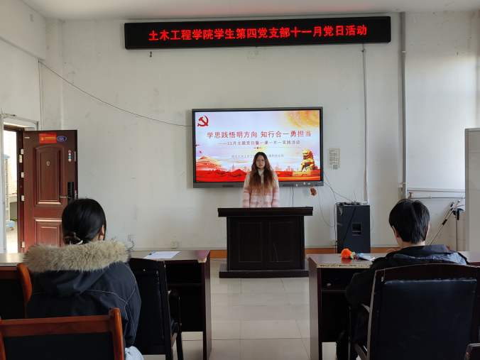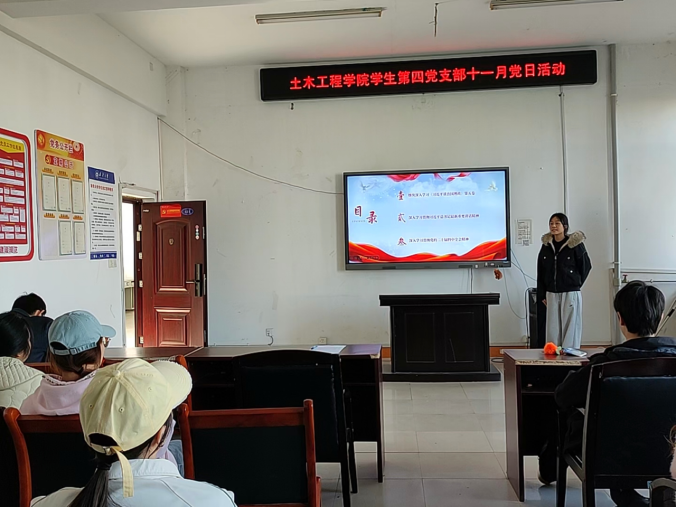 2025年10月27日下午,土木工程学院学生第四党支部在土木楼四楼会议室召开“学思践悟明方向,知行合一勇担当”十一月份主题教育党日活动。本次党日活动活动由谭思思同志主持,全体党员参加。
